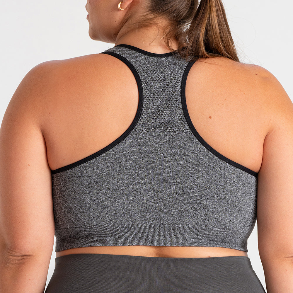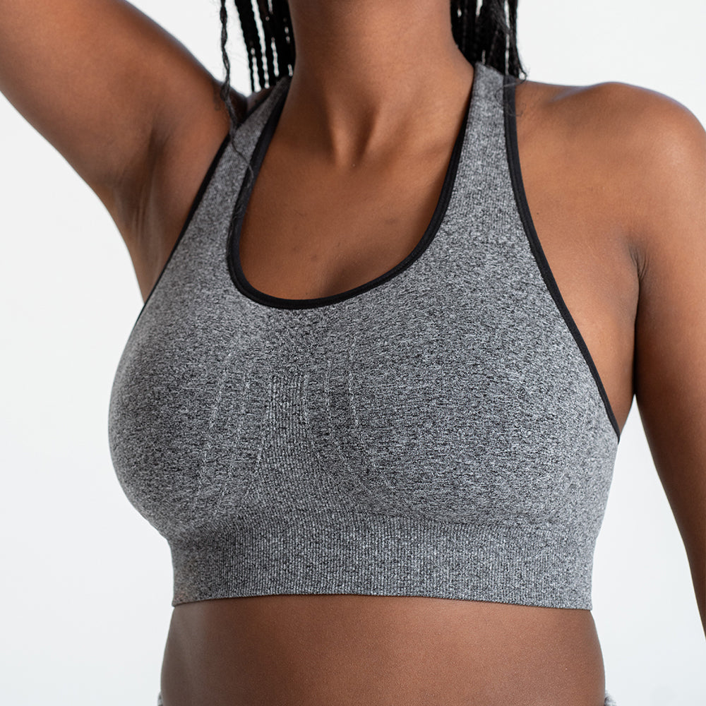 2-Pack Seamless Racerback Sports Bra - Heather Gray with Black Trim